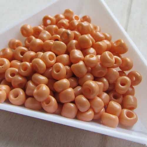 Rocailles licht oranjeOm een armbandje in één kleur mee te maken, of juist te gebruiken met allemaal andere leuke kleurtjes, het kan allemaal met deze kleine glaskraaltjes.