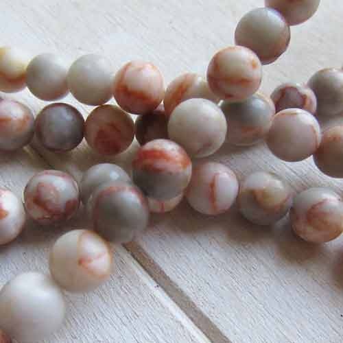 Streng netstone kralenIn mooie mengeling van tinten van grijzig, oranje naar rood.