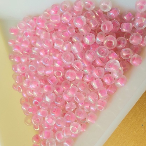 Rocailles 3 mm roze transparantDeze kraaltjes zijn doorzichtig, en alleen van binnen roze gekleurd. Daardoor wat zachter van uitstraling. Leuke, ietwat ongelijke glaskraaltjes voor het maken van leuke sieraden.