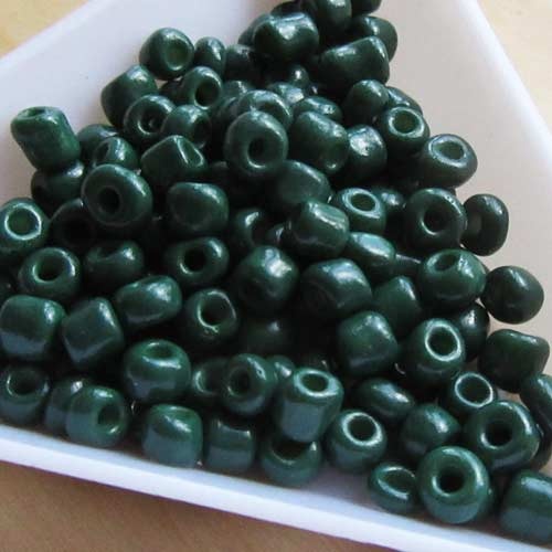 Rocailles 4 mm donkergroenLeuke, ietwat ongelijke glaskraaltjes voor het maken van leuke sieraden.