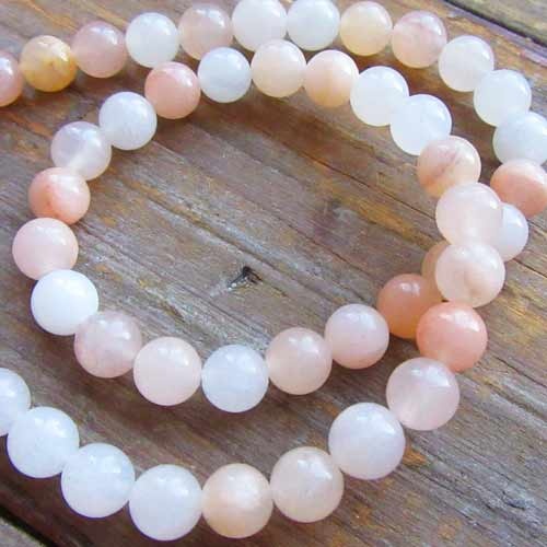 De kleuren in deze streng variëren van een beetje ecru-achtig naar zachte oranjetinten. Mooie kraal voor in het voorjaar of de zomer!