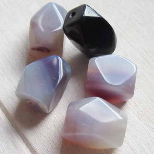 Agaat met grove facetten, gemëleerd van licht naar donkerpaars.• Maat: 15-18 x 11-13 mm, rijgaat ca. 1,5 mm.• De prijs is per stuk.