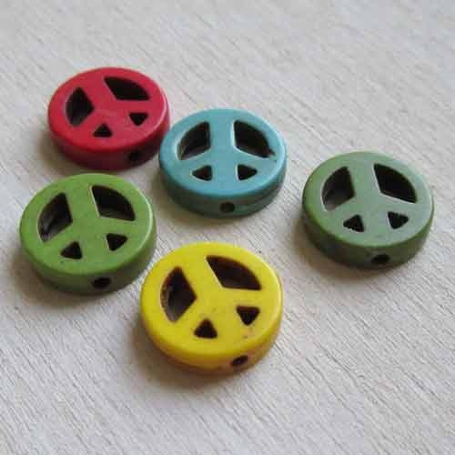 Kraal in de vorm van een peace kraal.• Maat: 12 mm, 3 mm dik, klein rijggat.• De prijs is per 5 stuks. • Mix, kleuren worden willekeurig assorti geleverd.