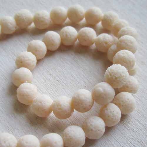 Streng imitatie lava kralen, crèmekleurig. Van kunsthars.