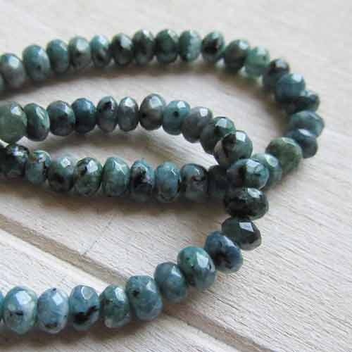 Turquoise steentjes, facetgeslepen.• Maat: 4 x 3 mm, klein rijggat.• Streng met ca. 110 kralen.