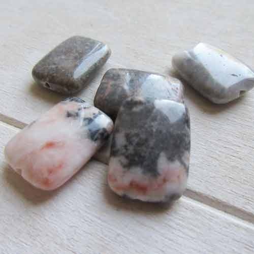 Rechthoekige jaspis kralen, gemêleerd grijs oranje.