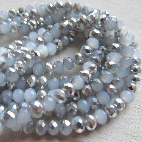 Facet rondellen in een wit-grijs met deels zilverkleurig laagje.