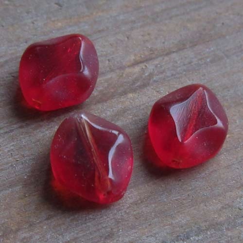 Lief glaskraaltje, dat leuk als tussenkraaltje gebruikt kan worden. Ook leuk in oorbellen. • Maat: 9 x 8 x 4 mm, rijggat: 1 mm.• Per stuk.• Materiaal: glas.• Kleur: rood.