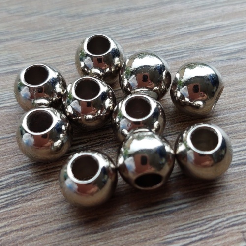 Ronde kraal met ruim rijggat.• Maat: 10 x 8 mm. Dik: 11 mm. Rijggat: 4 mm.• Per 10 stuks.