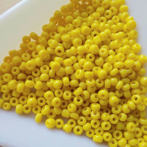 Kleine glaskraaltjes ondoorzichtig, felgeel gekleurd.