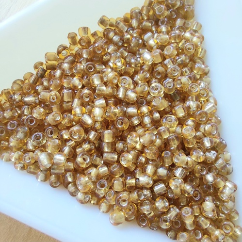 Deze kleine glaskraaltjes zijn transparant champagnekleurig en van binnen wit.
