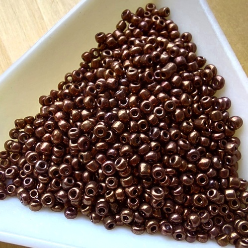 Metallic rocailles. Brons, maar wel vrij donker.