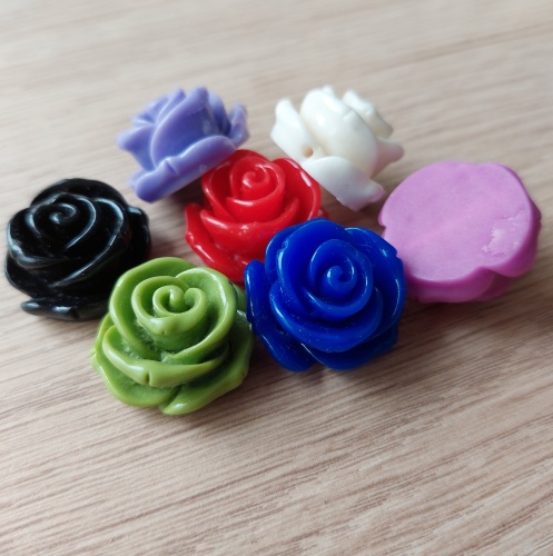 Een mooie kraal die mooi gedetailleerd in de vorm van een roos is gegoten. De achterkant, zie foto, is vlak.