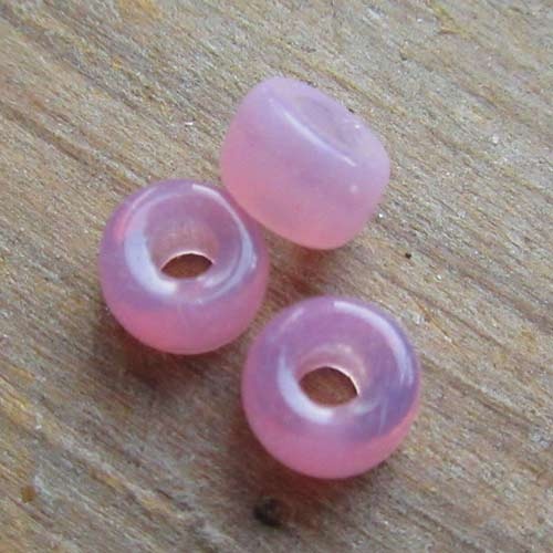 Roze kraaltje met melkachtige look. Eenvoudig kraaltje met een iets groter rijggat.