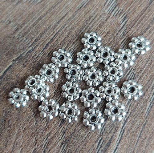 Hét klassieke model van de spacer. Maak je zelfgemaakte sieraad helemaal af met deze metalen tussenkraal. Deze kraal past mooi tussen kralen van 8 en 10 mm, het voorbeeld is met 8 mm glaskralen. Nikkelvrij uiteraard en bovendien lekker voordelig. Zelf sieraden maken blijft leuk bij Droomjuweeltjes!
