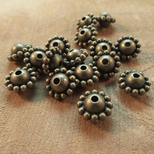 Ronde kraal met ribbelrand erom heen• Maat: 9 x 5 mm, rijggat 2 mm.• Per 16 stuks.De ribbelrand rondom deze kraal geeft de kraal het uiterlijk van een planeet met een band erom heen: Saturnus dus, vandaar de naam.Leuk ter afwisseling tussen kralen van 8, 9 mm. Dan komt de kraal mooi tot zijn recht.