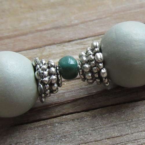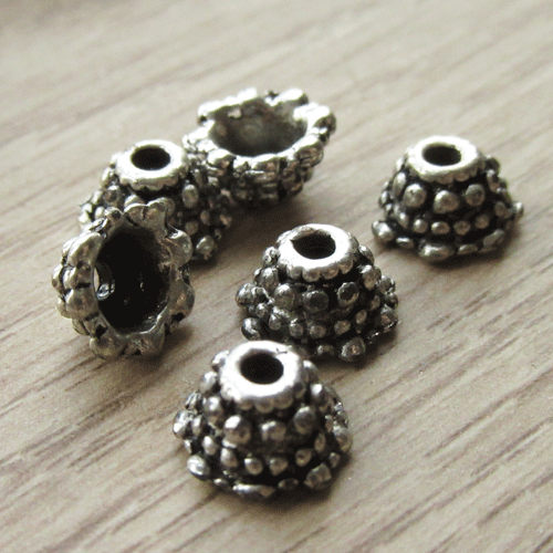 Bewerkt kralenkapje met bobbeltjes erop.In het voorbeeld zijn de kapjes met 12 mm kralen gebruikt.