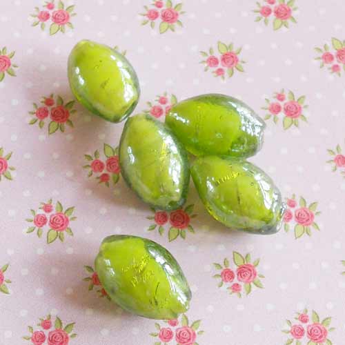 Lampworkkraal met witte kern en groene buitenlaag. Met mooie glans.