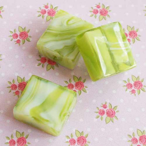 Wit-groen gem̻leerde kraal. Rechthoekig model.