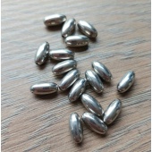 Metallook wil zeggen: het ziet eruit als metaal, maar het is het niet. Deze kraal is van kunststof gecoat met een dun laagje metaal. Deze kraal is mooi slank ovaal van vorm.
