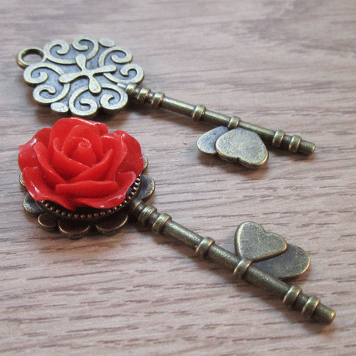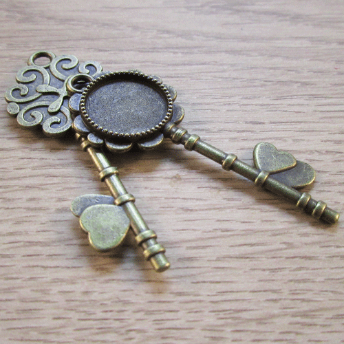 Zetting sleutel bronskleurMooie hanger met aan de voorkant een zetting voor een steen van 14 mm en aan de achterzijde een bewerkt oppervlak met krullen.