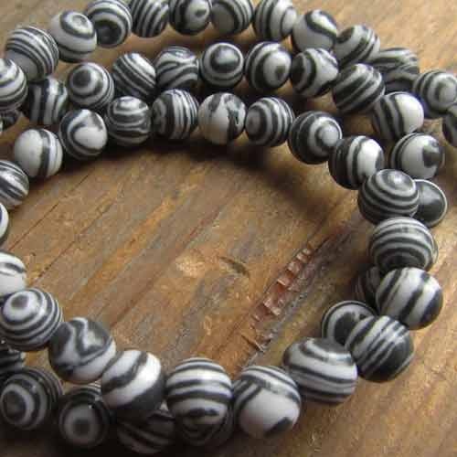 Streng imitatie malachiet, zwart-wit, 6 mm