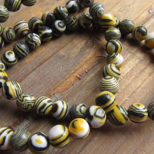 Streng imitatie malachiet, zwart-wit-geel, 6 mm