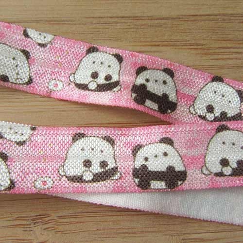 Vrolijk elastisch band met dessin met panda's op zachtroze band.