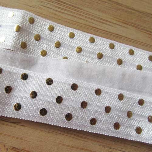 Vrolijk elastisch band met noppendessin in goud op effen achtergrond,
