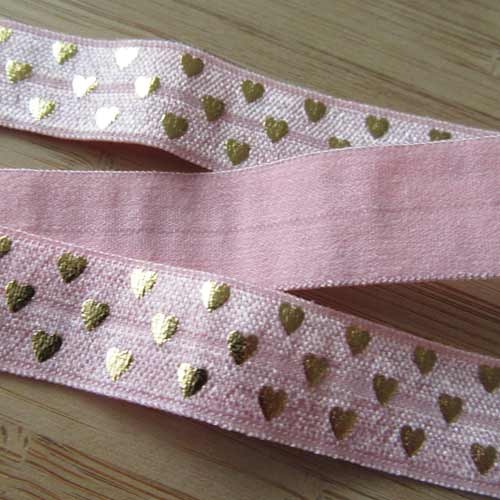 Vrolijk elastisch band met hartjesdessin in goud op effen achtergrond,