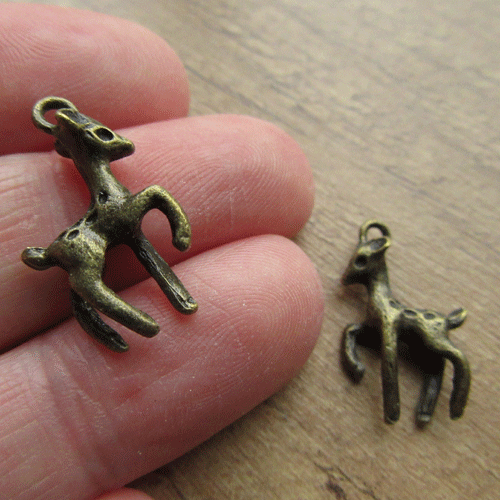Lief, mooi gedetailleerd uitgevoerd bedeltje van een miniatuur hertje compleet met vier pootjes.