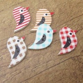 Houten knoop vogeltjeEigenwijs vogeltje met print in streep of ruitjes. Geadviseerd wordt de knoop voor decoratieve doeleinden te gebruiken, bijvoorbeel voor kaarten maken, scrapbooken, enz. Dit omdat de print waarschijnlijk afslijt bij het wassen van kleding.