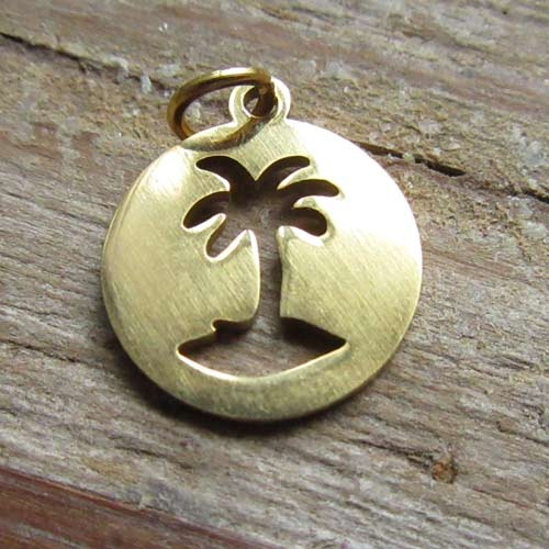 Mooi bedeltje rond, met uitgesneden palmboom.