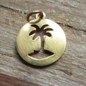 Goudkleurige bedel, lasercut. Beide kanten zijn hetzelfde, alleen staade palmboom precies andersom.