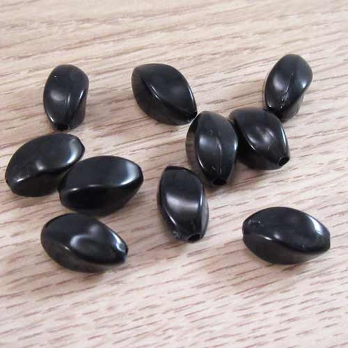 Zwarte kraal kunststof, langwerpigKralen van kunststof hebben het voordeel dat zij licht van gewicht zijn. Je kunt ze gebruiken in volle ontwerpen met kralen van glas om het ontwerp draagbaar te houden. Ook geschikt als kinderkraal.