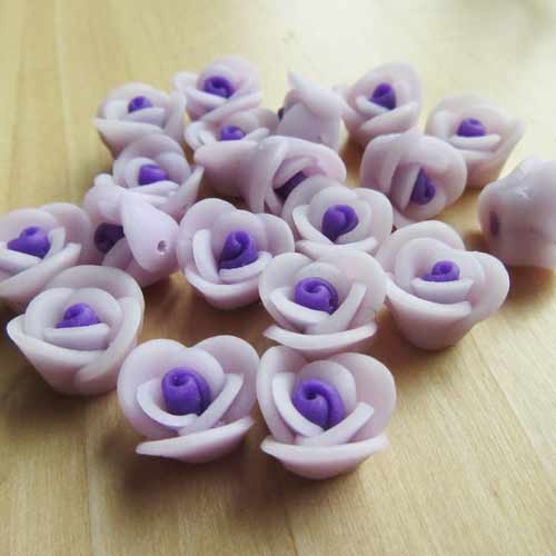 Fimo roosje paarsLief roosje in paars met donkerder getint hart. Het gaatje gaat horizontaal door de basis van het bloemetje.