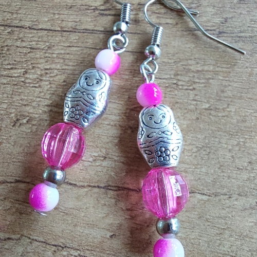 Het rijggat zit verticaal, van boven naar beneden door het figuurtje. Leuk voor oorbellen, zie foto. In het voorbeeld zijn kunststof kralen gebruikt, maar je krijgt heel makkelijk een meer volwassen uitstraling door bijvoorbeeld glaskralen in dezelfde formaten te gebruiken.