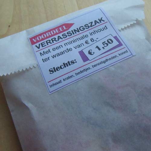 • mix van diverse materialen• per zakje een minimale inhoud ter waarde van € 6,-• elke mix kan een andere samenstelling hebben