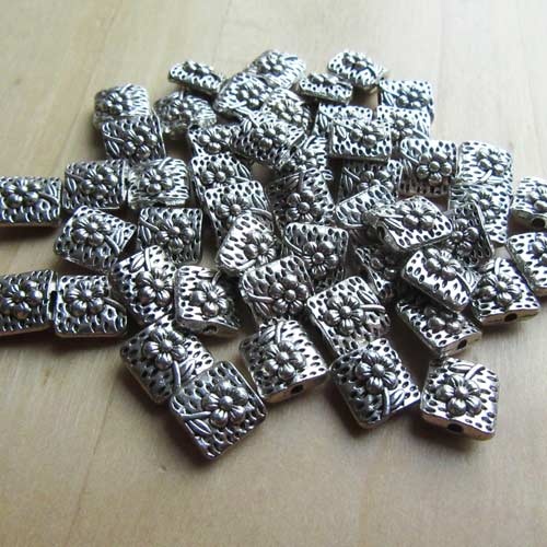 Vierkantje met bloemetje 50 stuksNu lekker veel voor een leuke prijs! Maar liefts 25% korting. Bijzonder kraaltje in de vorm van een afgeplat vierkantje.