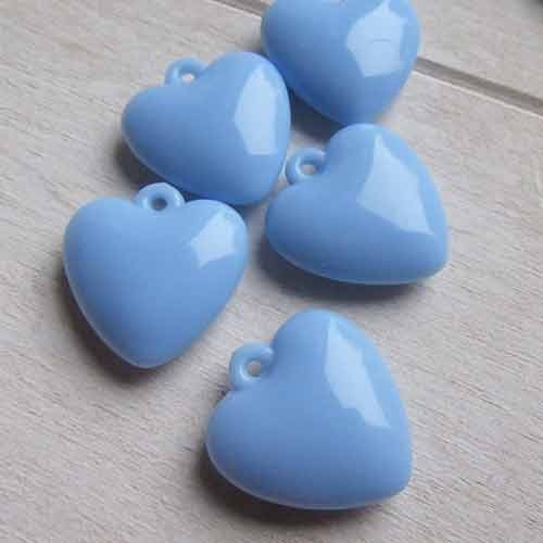 Lichtblauwe kunststof hartjes, bedeltjes.