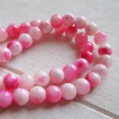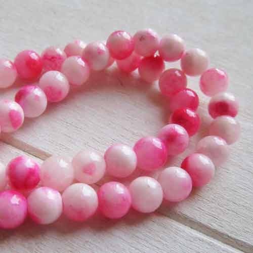 Geverfde jade in rozetinten.• Maat: 6 mm, klein rijggat.• Streng met ca. 67 kralen.