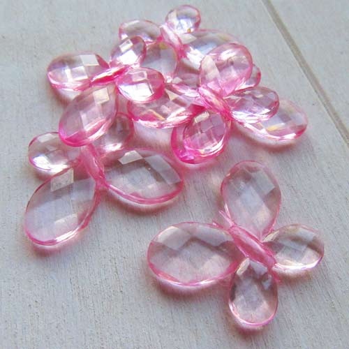 Leuke transparante kraal in de vorm van een vlinder • Maat: 30 x 23 mm, 4 mm dik, rijggat: 1,5 mm.• Per 6 stuks.