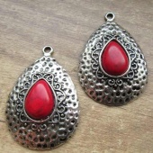 Metalen druppel met een rode imitatie turquoise steen erin. Niet helemaal perfect, dus daarom voor een leuk prijsje.