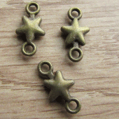 Tussenstuk ster bronsAntiek bronskleurig metalen tussenzetsel met twee ogen om, zoals het woord al zegt, ergens tussen te zetten. Ook leuk: zet allemaal tussenzetsels met verbindingsringen aan elkaar, zet er ergens als blikvanger een grote kraal tussen en maak er een armband van.