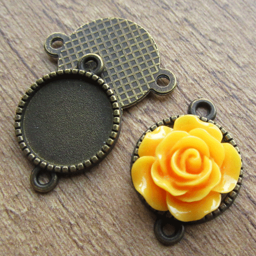 Deze zetting is vrij eenvoudig en heeft een smalle, iets bewerkte rand rondom. Met twee bevestigingsogen, dus ook goed geschikt om oorbellen mee te maken.