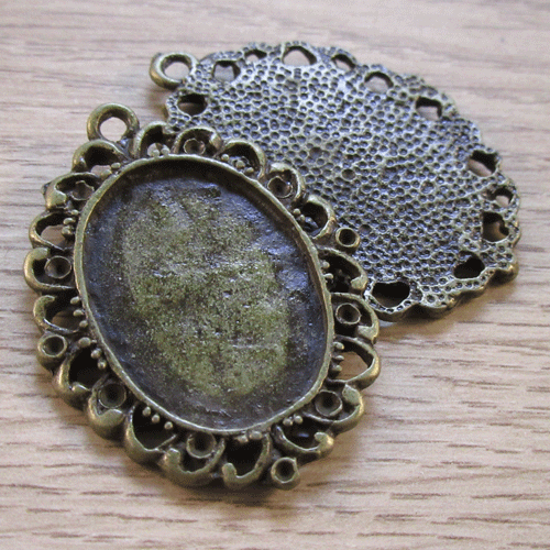 Zetting  rondom bewerkt met eventueel ruimte voor strassteentjes en in het midden een tray voor een camee of ovaal gevormde plaksteen.